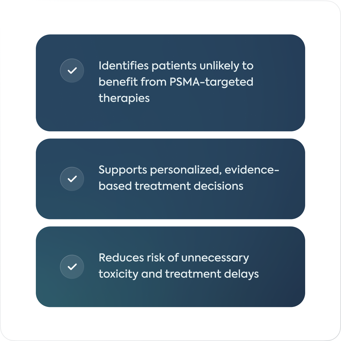 SelectPSMA supports clinical decision-making by identifying patients most likely to benefit from PSMA-targeted therapies. From therapy planning to trial enrollment, SelectPSMA adds precision at every stage, helping clinicians personalize care with confidence.