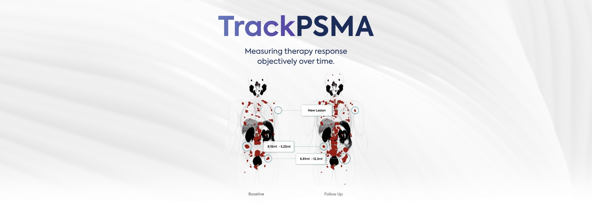 TrackPSMA delivers a comparative assessment, quantifying disease changes from screening and follow-up scans, vastly improving a process that is often unstructured, manual, visually evaluated and inconsistently applied. In addition, TrackPSMA enables lesion-by-lesion tracking for true longitudinal analysis, allowing clinicians to monitor changes in individual lesions over time. The result is a standardized and evidence-based assessment, available in seconds, that gives physicians the confidence and rigor to act sooner for data-driven decisions.